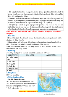- HS trình bày được đặc điểm nổi bật của iều kiện tự nhiên và tài nguyên thiên nhiên