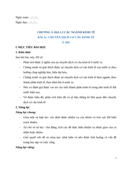 - Vẽ được biểu đồ, phân tích biểu đồ và số liệu thống kê liên quan đến chuyển dịch cơ cấu kinh tế. 2. Năng lực