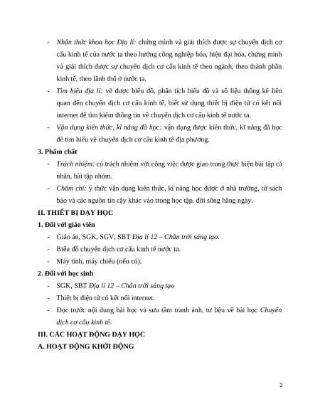 để tìm hiểu về chuyển dịch cơ cấu kinh tế địa phương. 3. Phẩm chất