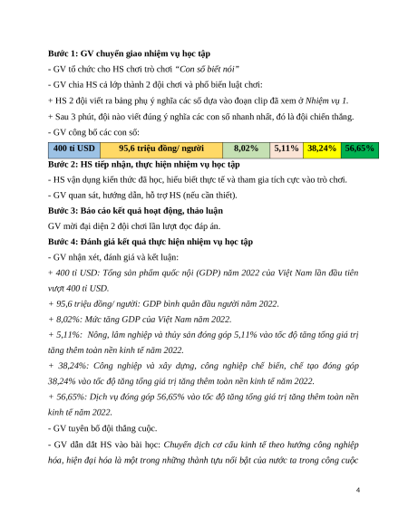 - GV nhận xét, đánh giá và chốt đáp án: Các con số xuất hiện trong video clip là: + 400 tỉ USD + 5,11%