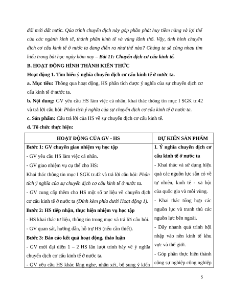BÀI 11: CHUYỂN DỊCH CƠ CẤU KINH TẾ (1 tiết)