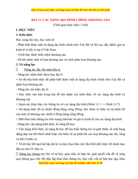 Giáo án Bài 11 Địa lí 6 Cánh diều (2024): Các dạng địa hình chính và khoáng sản