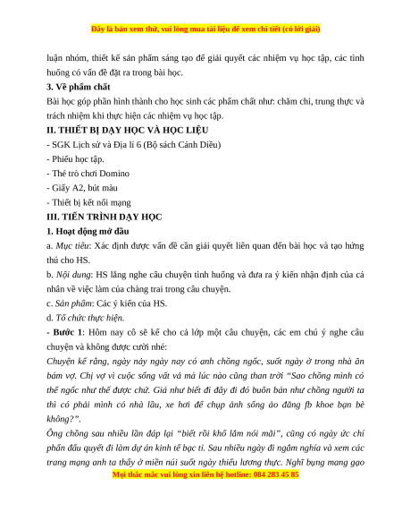 - SGK Lịch sử và Địa lí 6 (Bộ sách Cánh Diều) - Phiếu học tập. - Thẻ trò chơi Domino - Giấy A2, bút màu