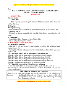 VÀ BẢO VỆ THIÊN NHIÊN ( Số tiết: 02) I. MỤC TIÊU: Yêu cầu cần đạt: - 1. Kiến thức: -