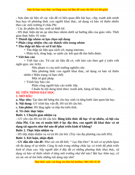 Trình bày được cách thức người dân châu Phi khai thác thiên nhiên ở các mỏi trường khác nhau. 2. Năng lực: * Năng lực chung