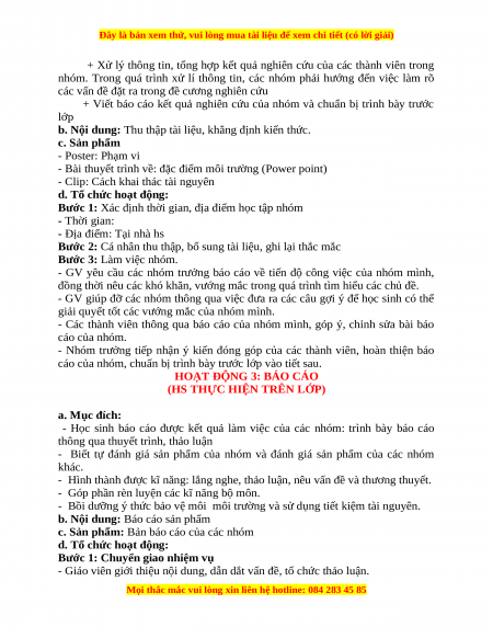 + Viết báo cáo. Từ các tài liệu đã có, viết báo cáo theo gợi ý (nên viết ngắn gọn, súc tích):
