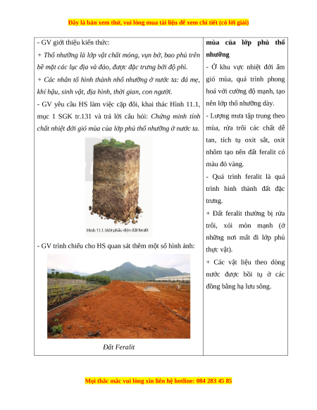- Chứng minh được tính chất nhiệt đới gió mùa của lớp phủ thổ nhưỡng.