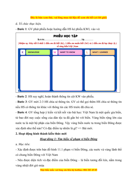 b. Nội dung: HS hoàn thành phiếu thông tin KWL