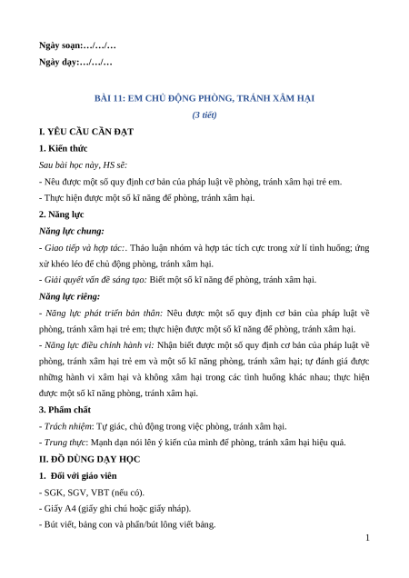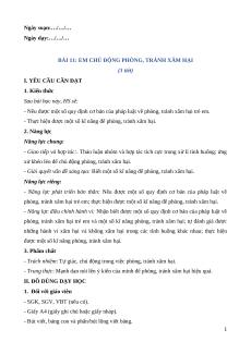 BÀI 11: EM CHỦ ĐỘNG PHÒNG, TRÁNH XÂM HẠI (3 tiết)