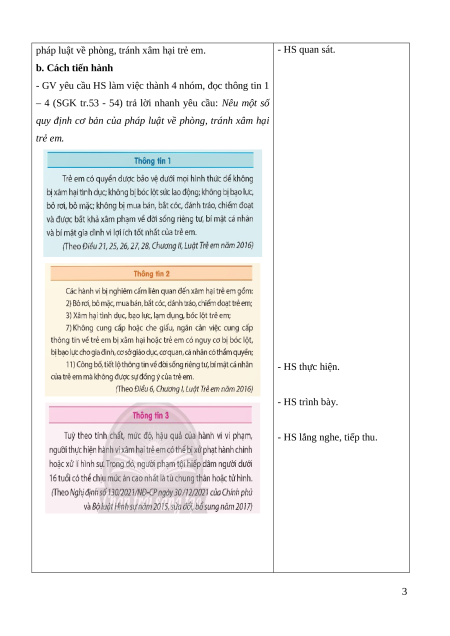 pháp luật về phòng, tránh xâm hại trẻ em. - HS quan sát. b. Cách tiến hành