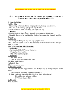 Giáo án Bài 11 GDCD 9: Trách nhiệm của thanh niên trong sự nghiệp công nghiệp hóa, hiện đại hóa