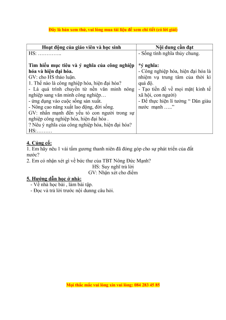 ? Nêu ý nghĩa của công nghiệp hóa, hiện đại hóa? HS:……… 4. Củng cố: