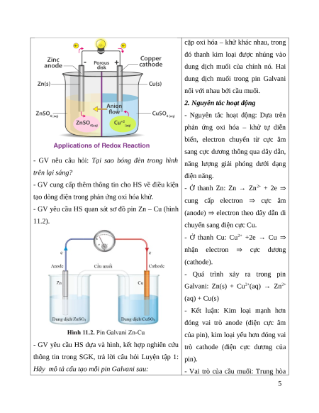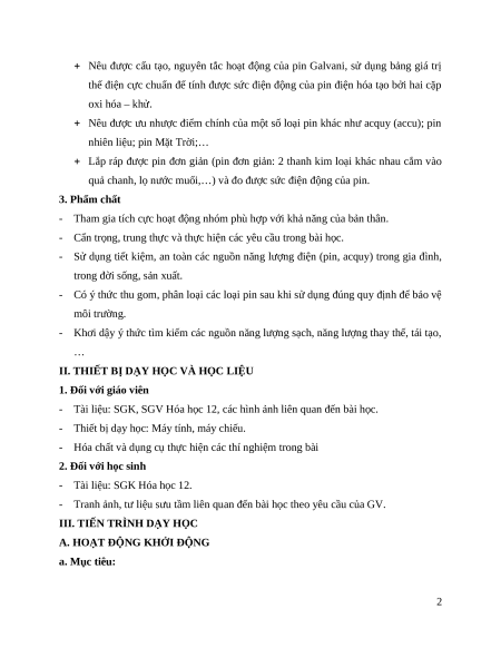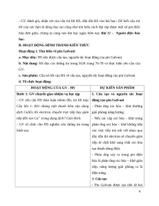 - Nêu được cấu tạo, nguyên tắc hoạt động của pin Galvani, sử dụng bảng giá trị thế