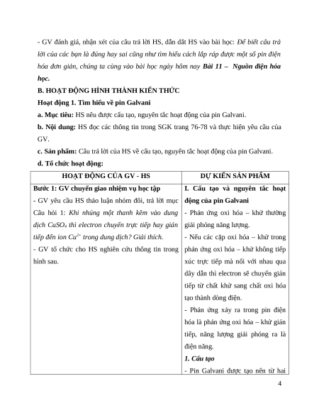 a. Mục tiêu: HS nêu được cấu tạo, nguyên tắc hoạt động của pin Galvani.