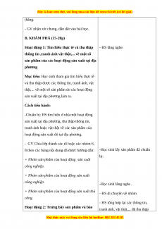 - HS: Thông tin ,tranh ảnh vật thật,... về một số sản phẩm của các hoạt động sản xuất tại địa phương.