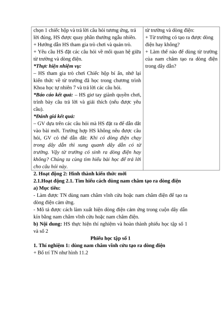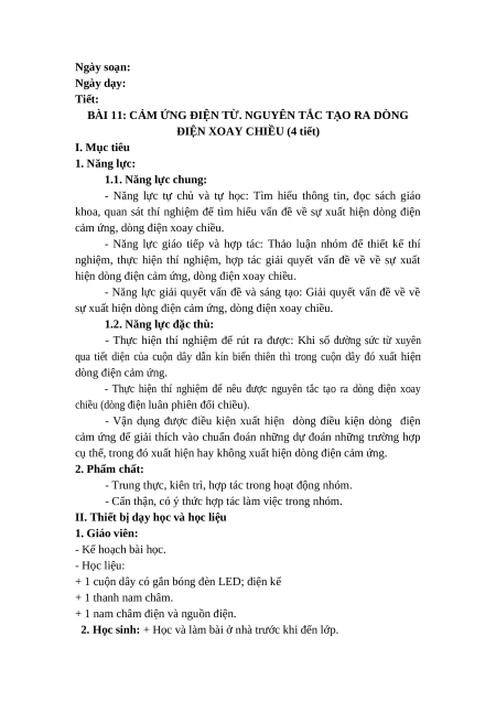 cụ thể, trong đó xuất hiện hay không xuất hiện dòng điện cảm ứng. 2. Phẩm chất: