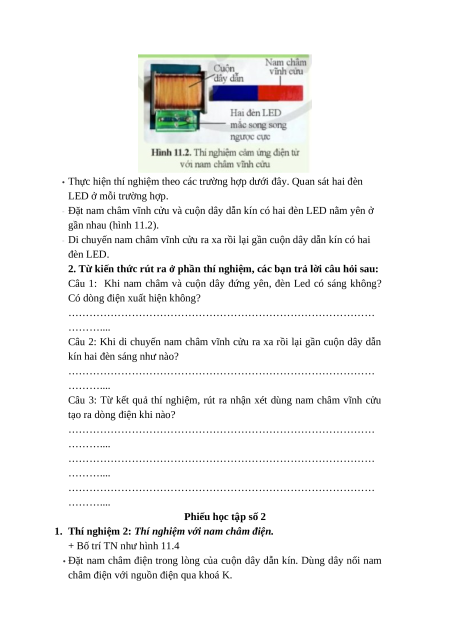 + 1 cuộn dây có gắn bóng đèn LED; điện kế + 1 thanh nam châm.