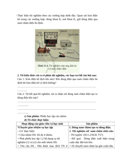 - Làm được TN dùng nam châm vĩnh cửu hoặc nam châm điện để tạo ra dòng điện cảm ứng.