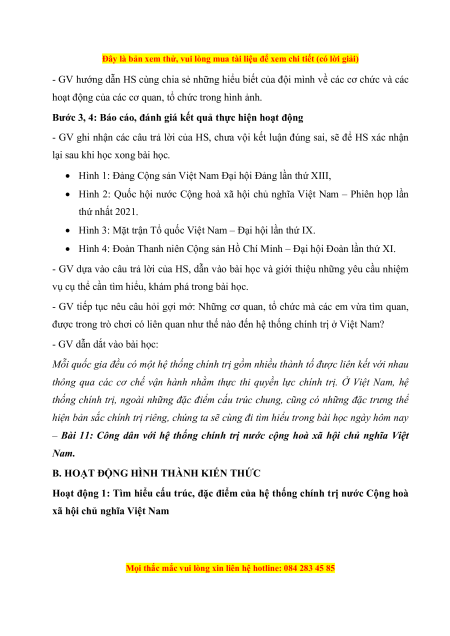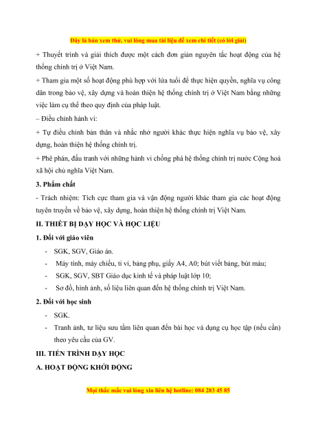 Giáo án Bài 11 KTPL 10 Cánh diều: Hệ thống chính trị cước Cộng hòa xã hội chủ nghĩa Việt Nam