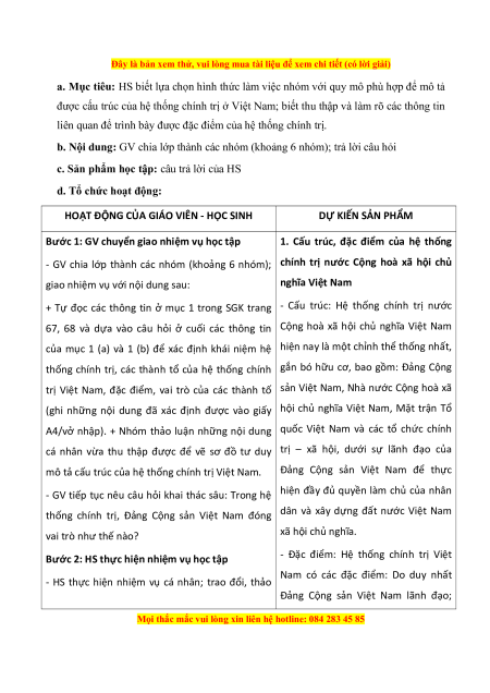 - Nêu được cấu trúc, đặc điểm và nguyên tắc hoạt động của hệ thống chính trị nước