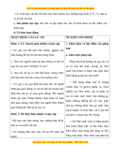 - Nêu được khái niệm, đặc điểm, vai trò của pháp luật trong đời sống xã hội.