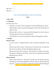 BÀI 11. QUYỀN BÌNH ĐẲNG GIỮA CÁC DÂN TỘC (2 tiết) I. MỤC TIÊU 1. Về kiến thức Sau bài học này, HS sẽ: