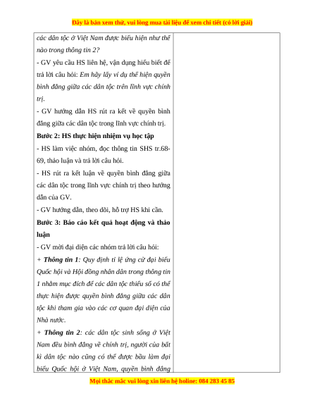 - GV mời 2 HS đọc thông tin trong SHS tr.68- đẳng giữa các dân tộc 69.