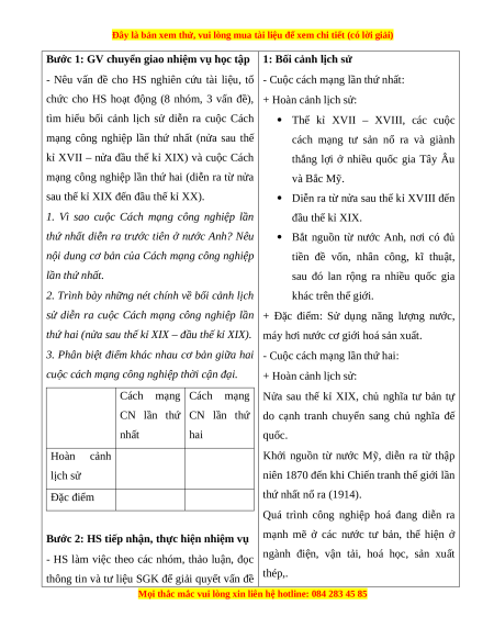 + Trình bày được nét chính về bối cảnh lịch sử diễn ra hai cuộc Cách mạng công