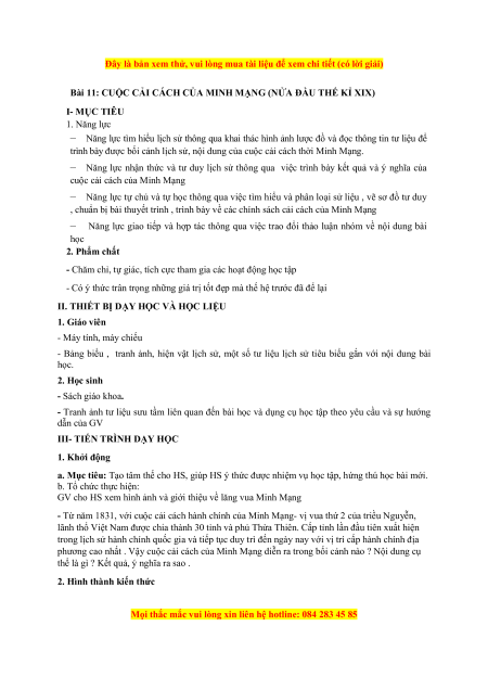 Bài 11: CUỘC CẢI CÁCH CỦA MINH MẠNG (NỬA ĐẦU THẾ KỈ XIX) I- MỤC TIÊU 1. Năng lực