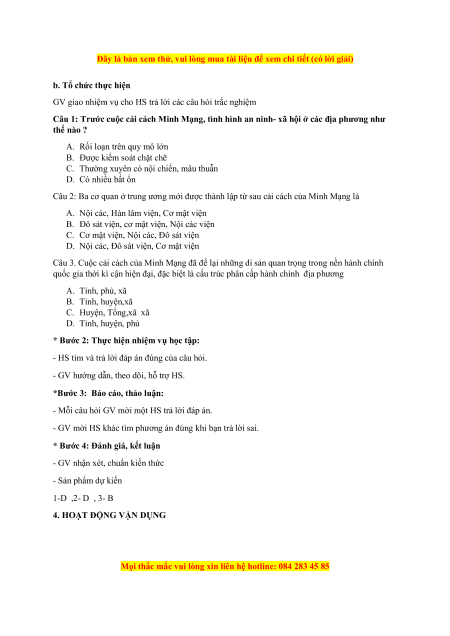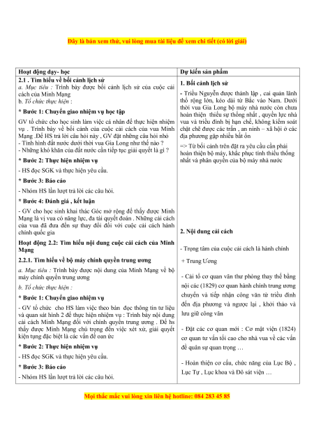 Đây là bản xem thử, vui lòng mua tài liệu để xem chi tiết (có lời giải) Hoạt động dạy- học Dự kiến sản phẩm
