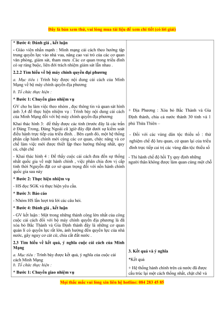ảnh 3,4 để thực hiện nhiệm vụ : Trình bày nội dung cải cách + Địa Phương : Xóa bỏ Bắc Thành và Gia