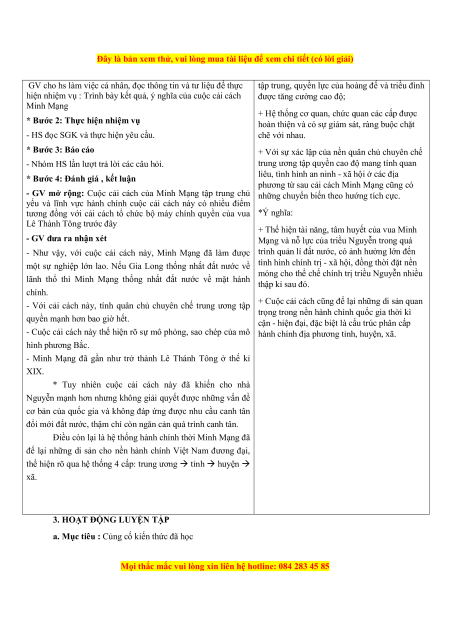 - GV mở rộng: Cuộc cải cách của Minh Mạng tập trung chủ