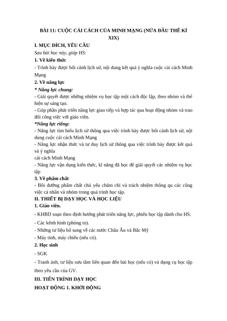 - Trình bày được bối cảnh lịch sử, nội dung kết quả ý nghĩa cuộc cải cách Minh Mạng 2. Về năng lực * Năng lực chung: