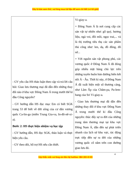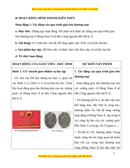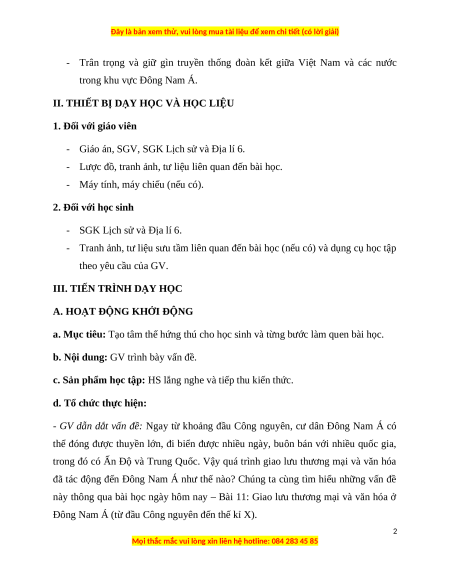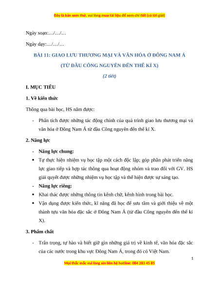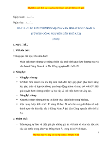 Giáo án Bài 11 Lịch sử 6 Cánh diều (2024): Giao lưu thương mại và văn hóa ở Đông Nam Á