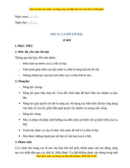 BÀI 11: LA MÃ CỔ ĐẠI (2 tiết) I. MỤC TIÊU