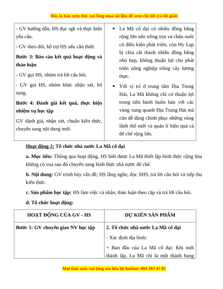 Nêu và nhận xét được ảnh hưởng của điều kiện tự nhiên tới sự phát triển của La Mã.
