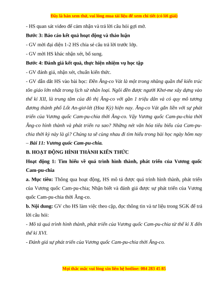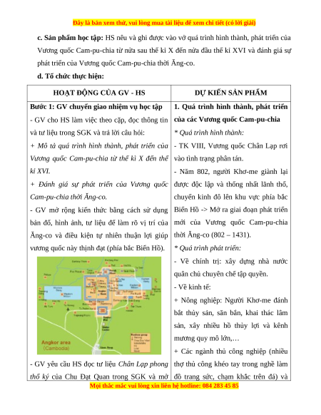 Giáo án Bài 11 Lịch sử 7 Cánh diều (Phiên bản 2): Vương quốc Campuchia