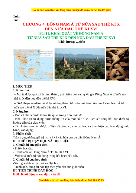 Giáo án Bài 11 Lịch sử 7 Chân trời sáng tạo (2024): Khái quát về Đông Nam Á từ nửa sau thế kỉ X đến nửa đầu thế kỉ XVI