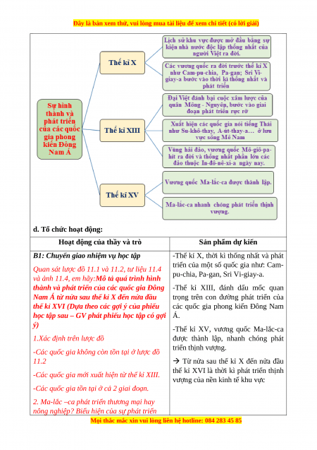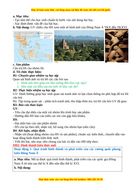 b. Nội dung: GV chiếu cho HS xem một số hình ảnh của Đông Nam Á TKX đến TKXVI c. Sản phẩm