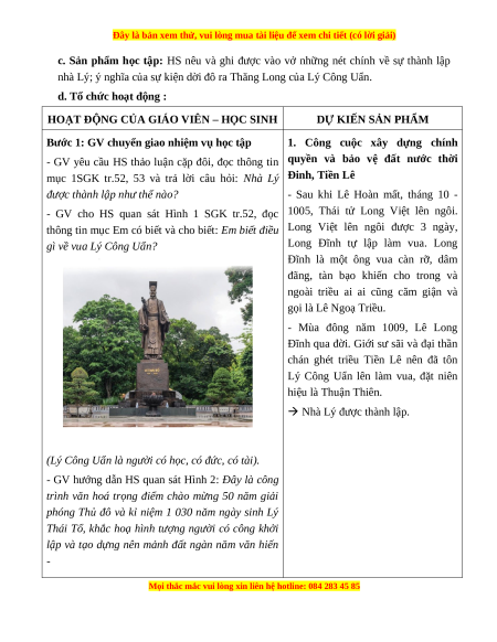 - Đánh giá được ý nghĩa của sự kiện dời đô ra Thăng Long của Lý Công Uẩn.