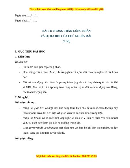Giáo án Bài 11 Lịch sử 8 Chân trời sáng tạo (2024): Phong trào công nhân và sự ra đời chủ nghĩa Mác