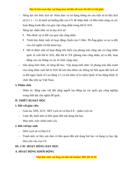 kỉ XIX, đầu thế kỉ XX (phong trào công nhân, sự ra đời và hoạt động của Đảng, các tổ chức cộng sản. 2. Năng lực