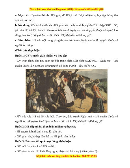 c. Sản phẩm: HS nêu nội dung, ý nghĩa của bức tranh Ngày mai – khi quyền thuộc về người lao động.