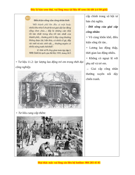 + Tư liệu 11.1: điều kiện của những người công nhân tại số lượng lớn người làm