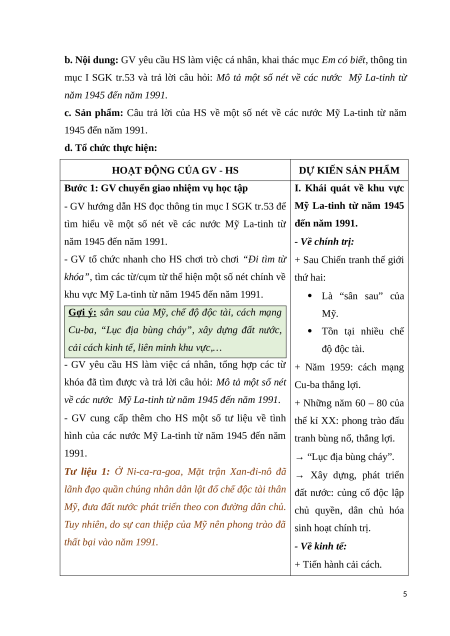 Giáo án Bài 11 Lịch sử 9 Cánh diều: Khu vực Mỹ La-tinh từ năm 1945 đến năm 1991