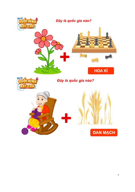 - Nhiệm vụ 1: GV tổ chức cho HS chơi trò chơi “Đuổi hình bắt chữ” để tìm ra tên các quốc gia.