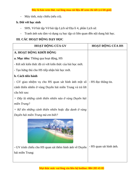 Giáo án Bài 11 Lịch sử & Địa lí lớp 4 Cánh diều: Thiên nhiên vùng Duyên hải miền Trung