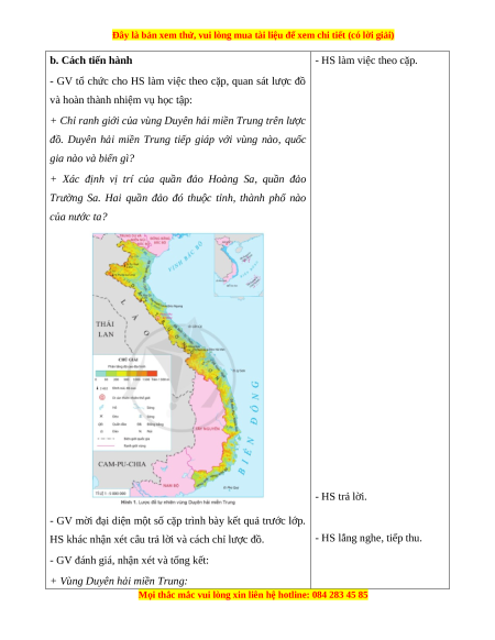 Hoạt động 1: Xác định vị trí địa lí của vùng Duyên hải miền Trung