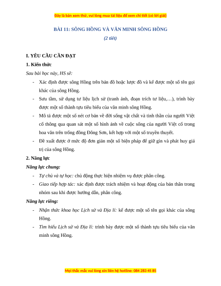 BÀI 11: SÔNG HỒNG VÀ VĂN MINH SÔNG HỒNG (2 tiết)