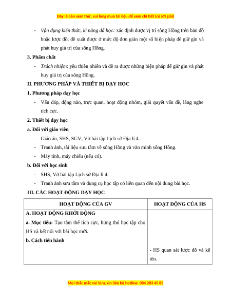 - Đề xuất được ở mức độ đơn giản một số biện pháp để giữ gìn và phát huy giá trị của sông Hồng. 2. Năng lực